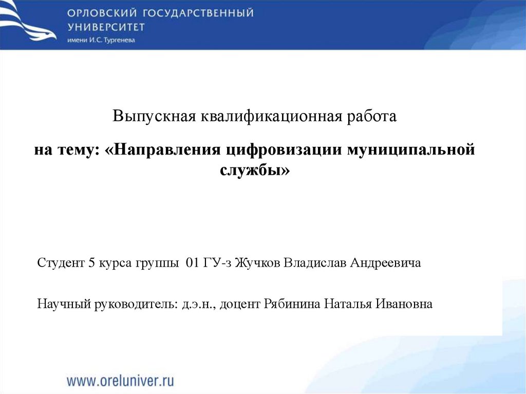Выпускная квалификационная работана тему: «Направления цифровизации муниципальной