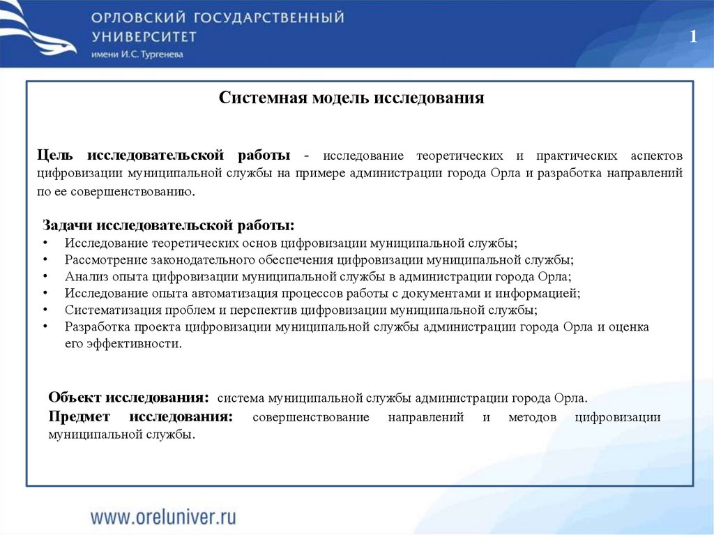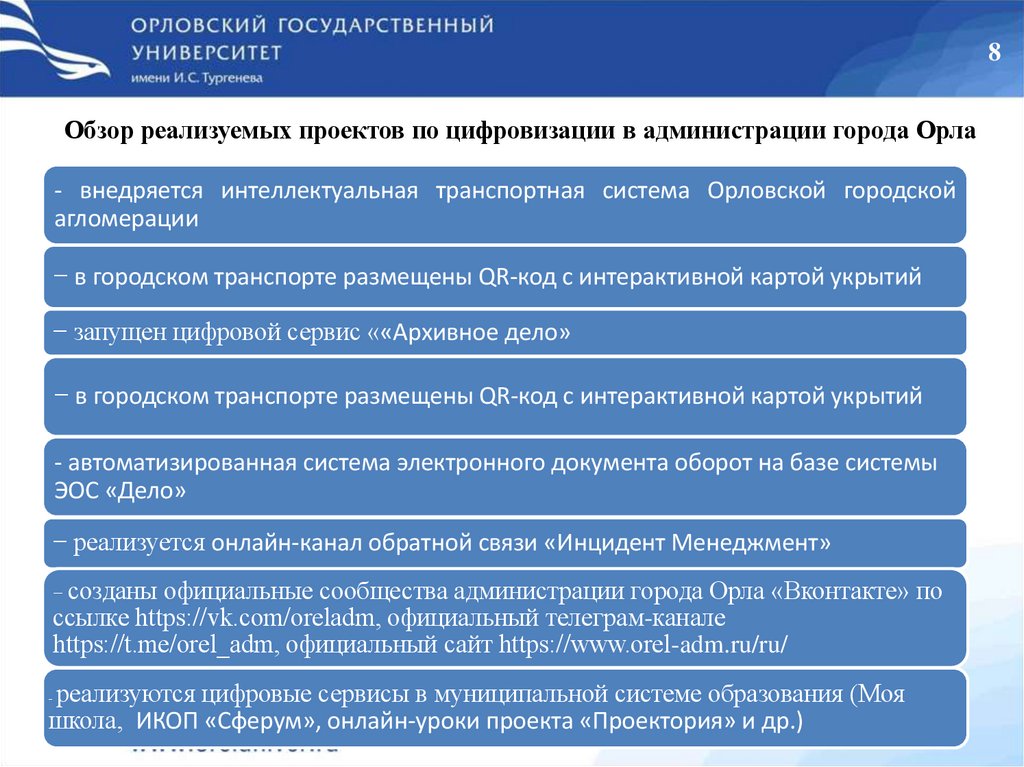 Анализ опыта цифровизации муниципальной службы в администрации города Орла;