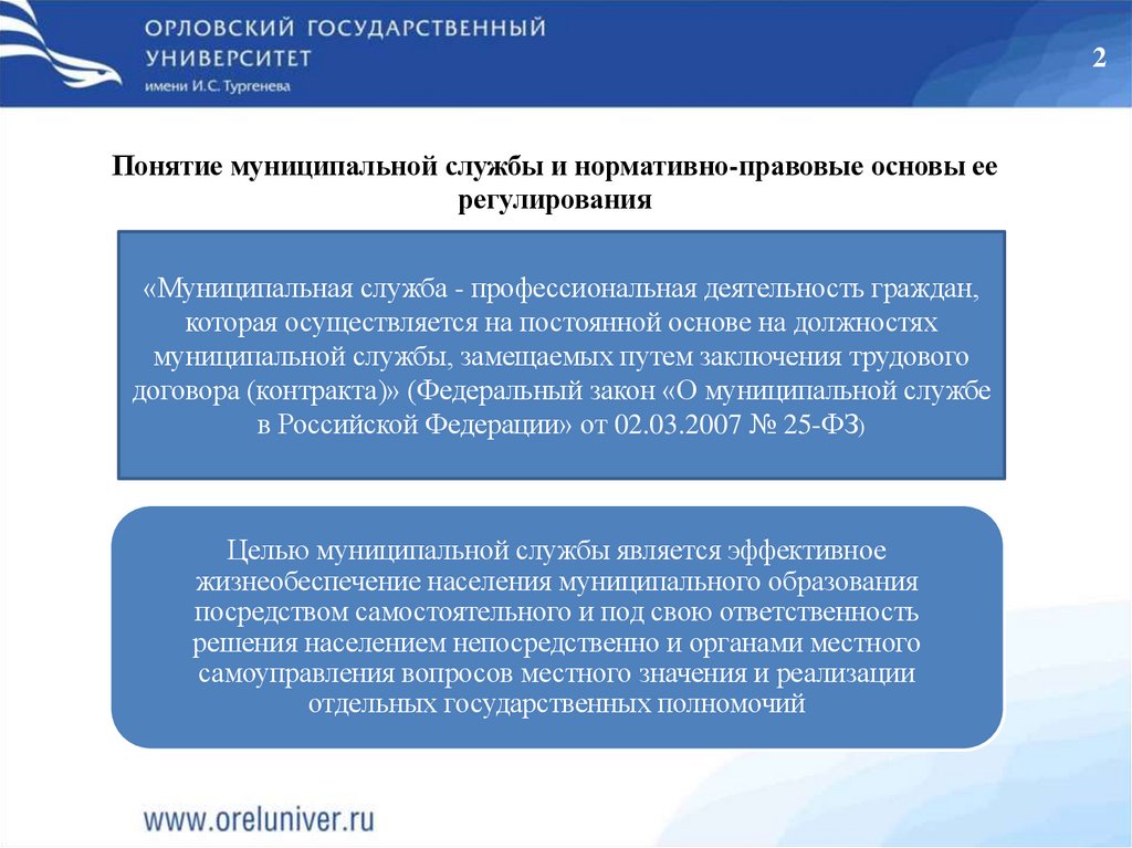 2Понятие муниципальной службы и нормативно-правовые основы ее