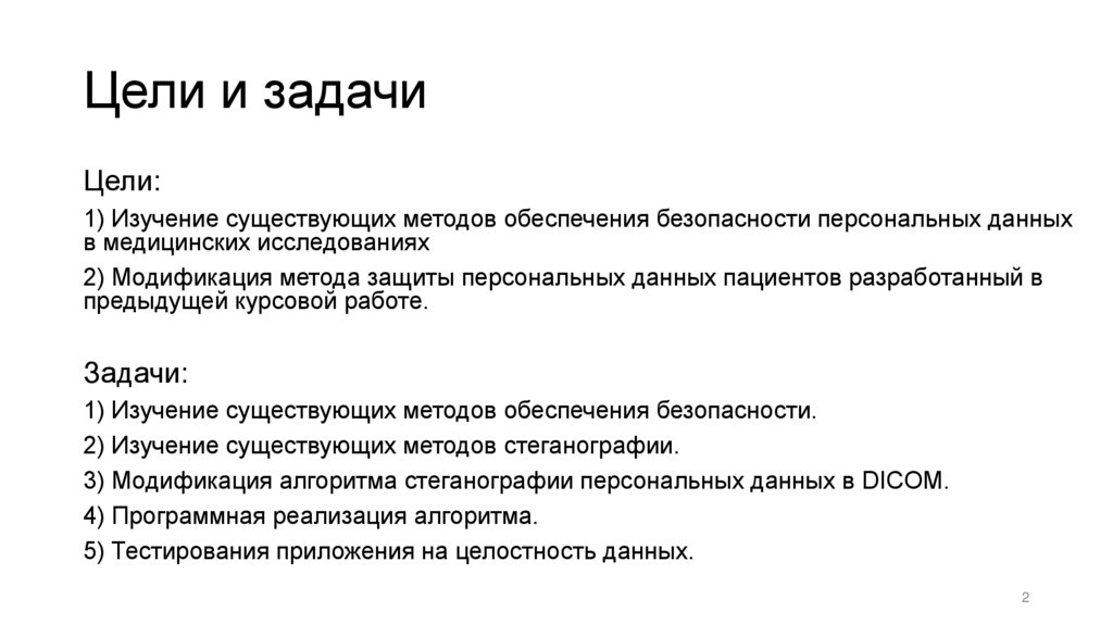Цели и задачиЦели: