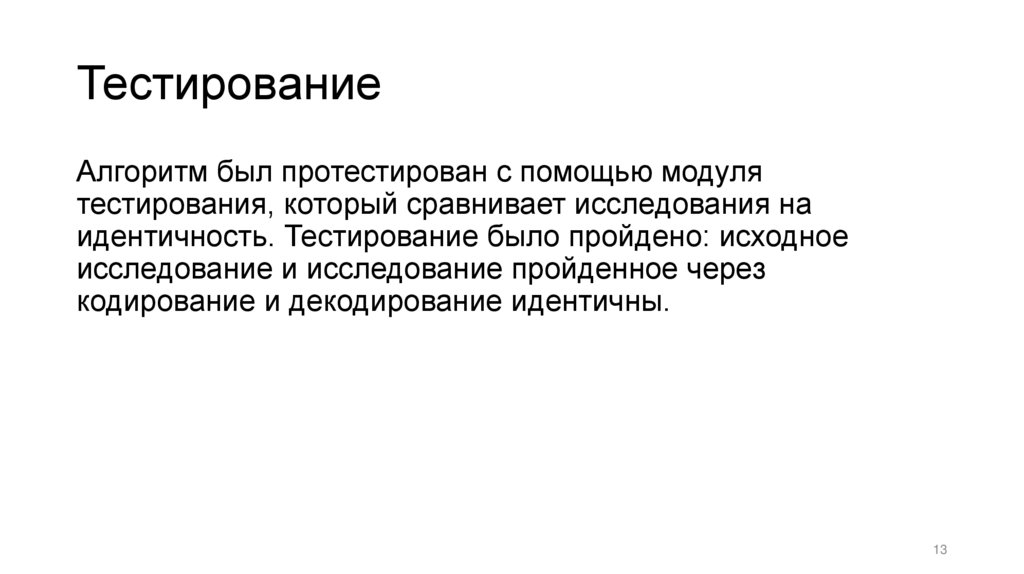ТестированиеАлгоритм был протестирован с помощью модуля