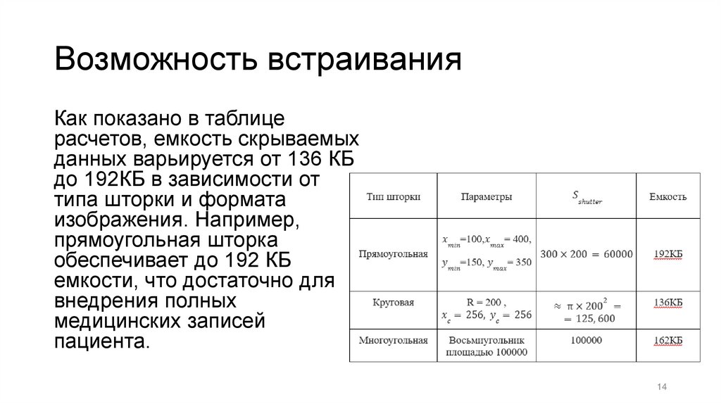 расчетов, емкость скрываемых