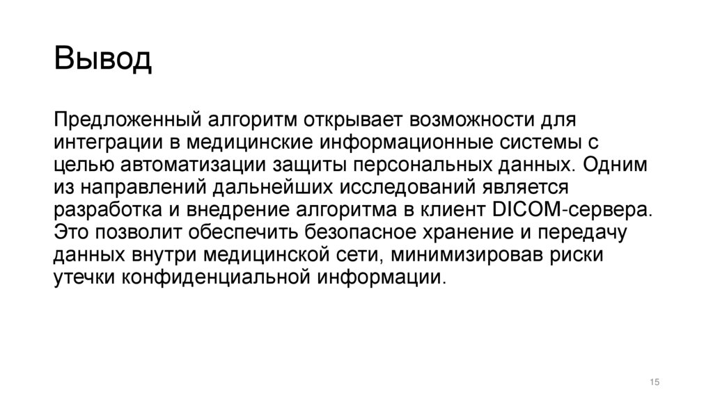 ВыводПредложенный алгоритм открывает возможности для