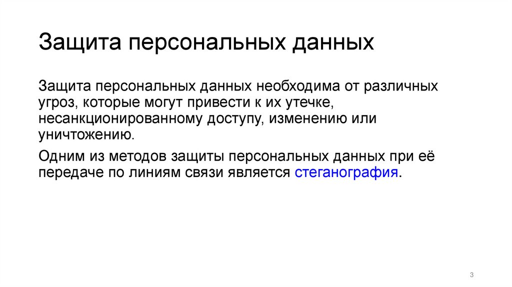 Защита персональных данныхЗащита персональных данных необходима от различных
