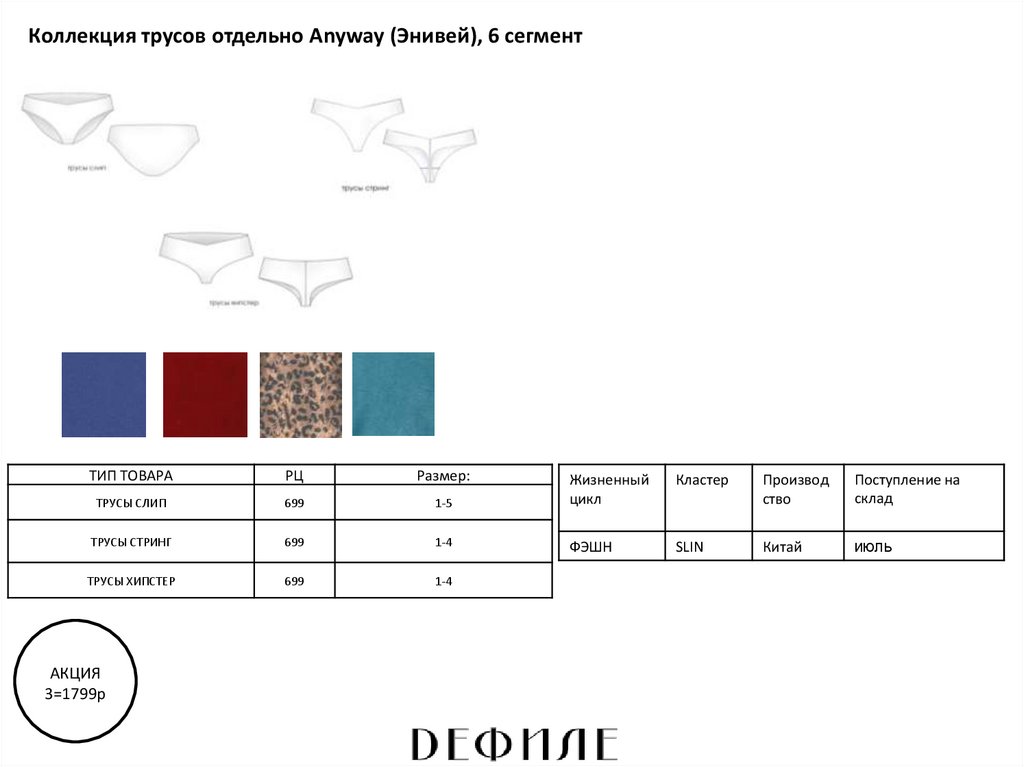 Коллекция белья EMMA (Эмма), 5 сегментТИП ТОВАРА