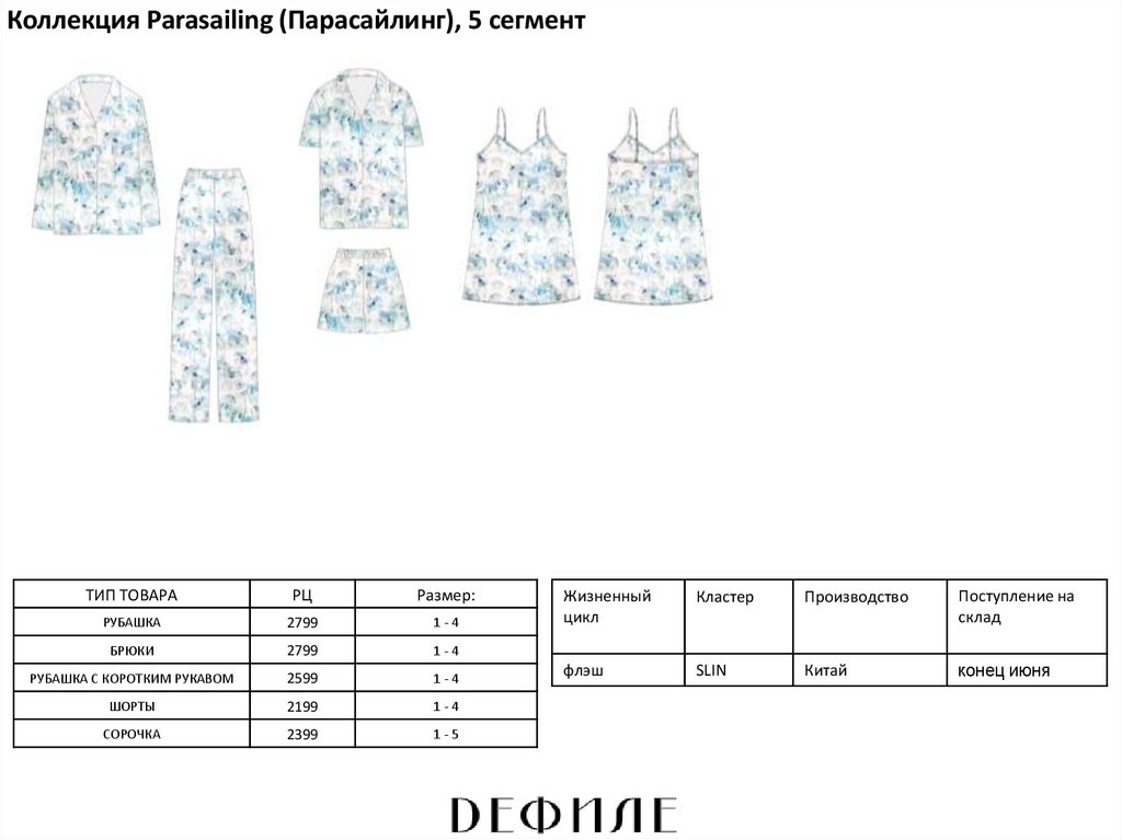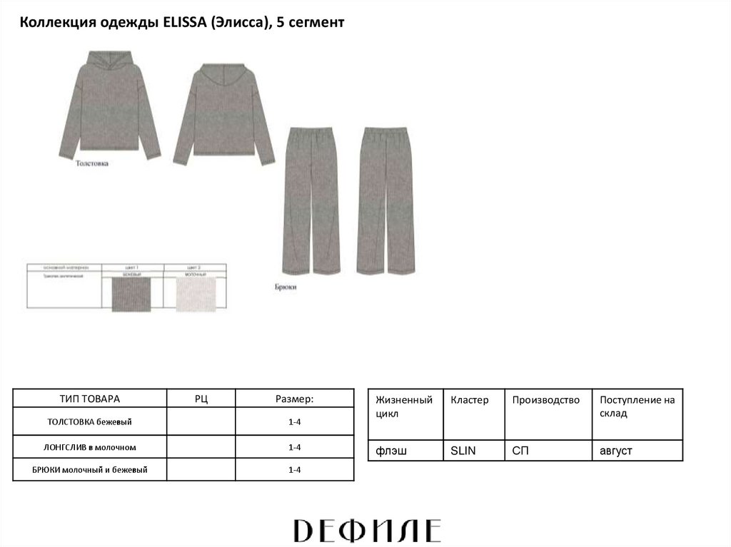 Коллекция одежды ELISSA (Элисса), 5 сегментТИП ТОВАРА