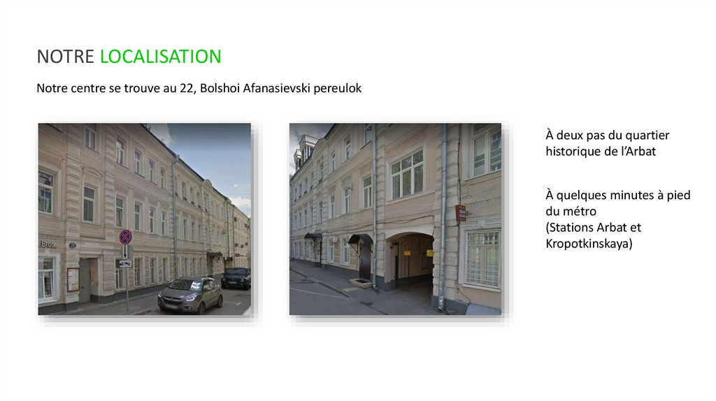 Notre centre se trouve au 22, Bolshoi Afanasievski pereulok