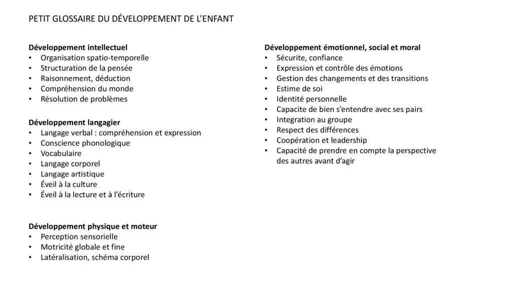 PETIT GLOSSAIRE DU DÉVELOPPEMENT DE L’ENFANT