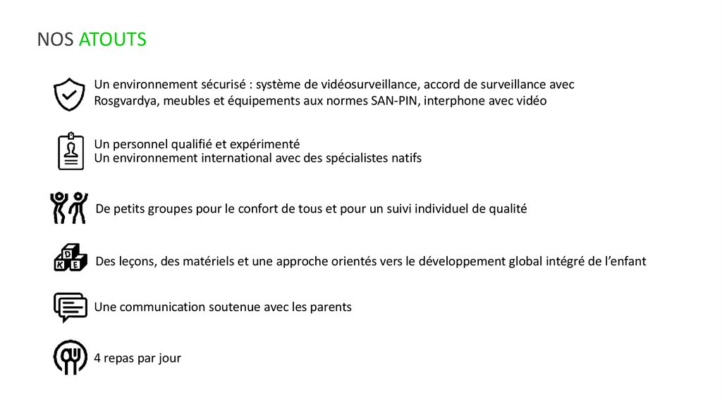 Des leçons, des matériels et une approche orientés vers le développement global intégré de l’enfant