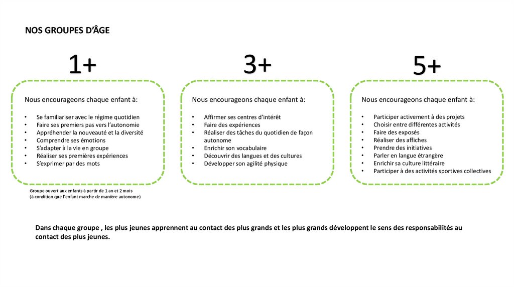 Dans chaque groupe , les plus jeunes apprennent au contact des plus grands et les plus grands développent le sens des responsabilités au