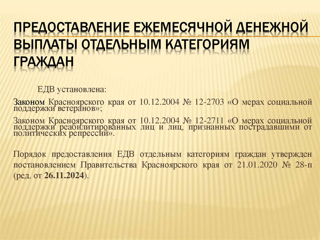 ПРЕДОСТАВЛЕНИЕ ЕЖЕМЕСЯЧНОЙ ДЕНЕЖНОЙВЫПЛАТЫ ОТДЕЛЬНЫМ КАТЕГОРИЯМ