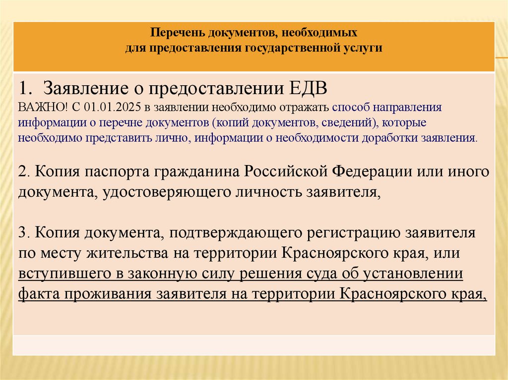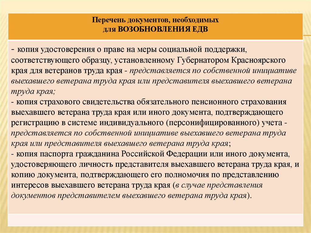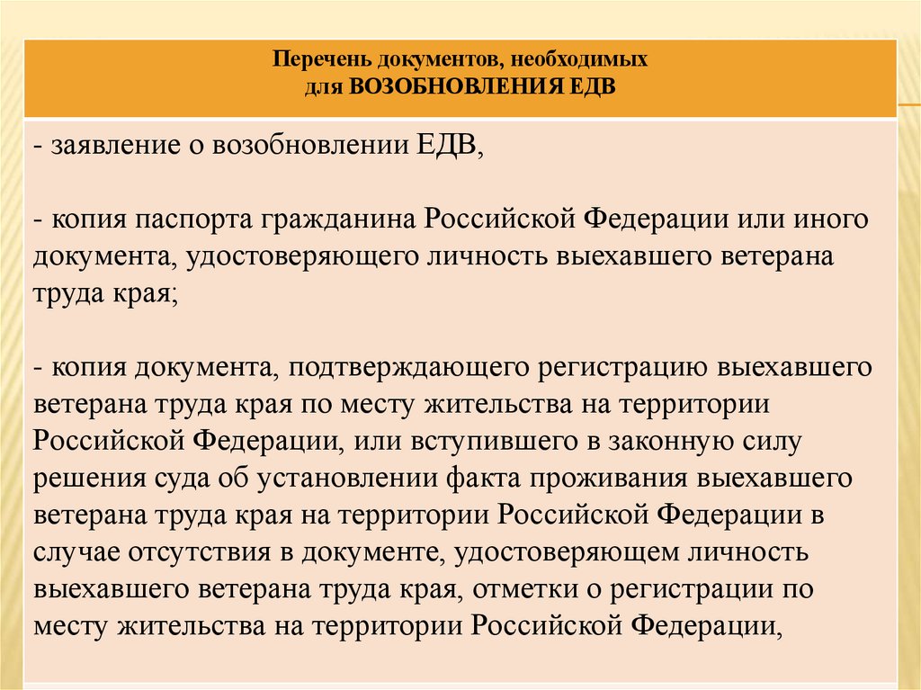 Перечень документов, необходимыхдля ВОЗОБНОВЛЕНИЯ ЕДВ