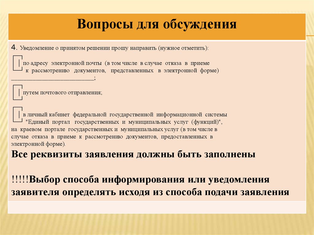 Вопросы для обсуждения4. Уведомление о принятом решении прошу направить (нужное отметить):