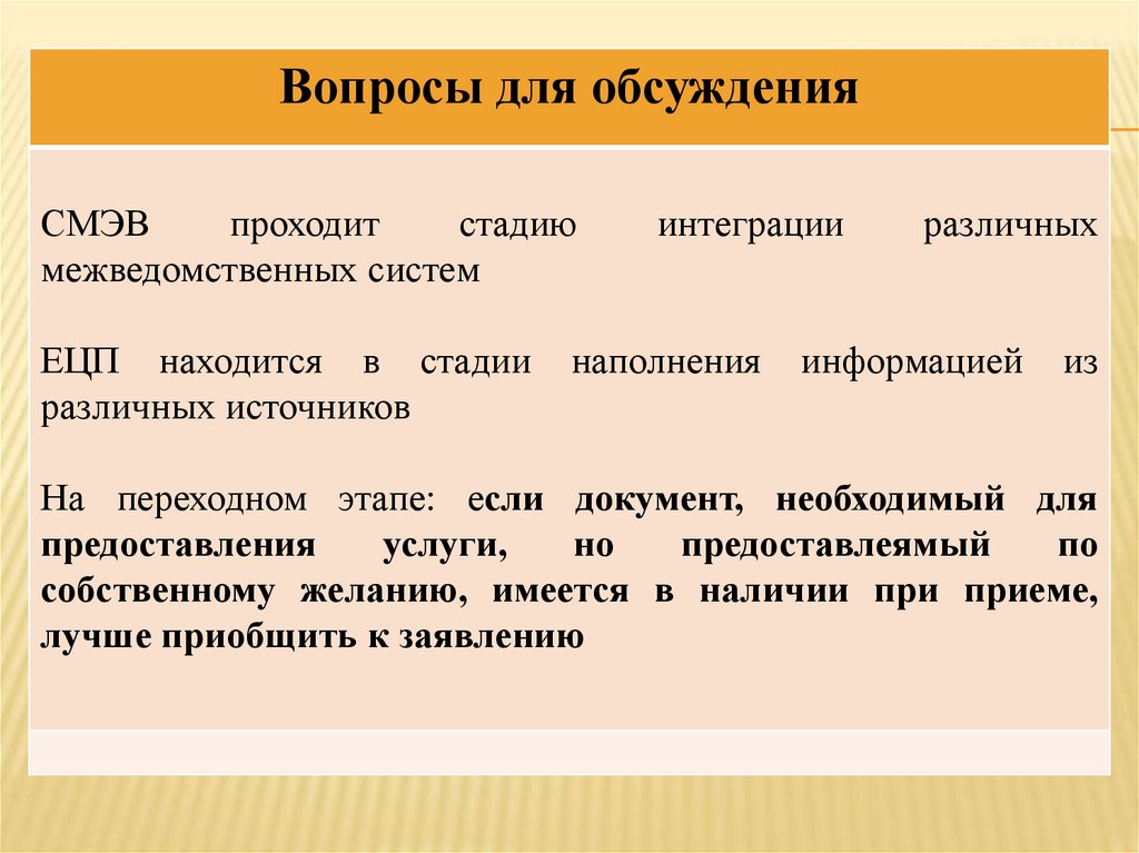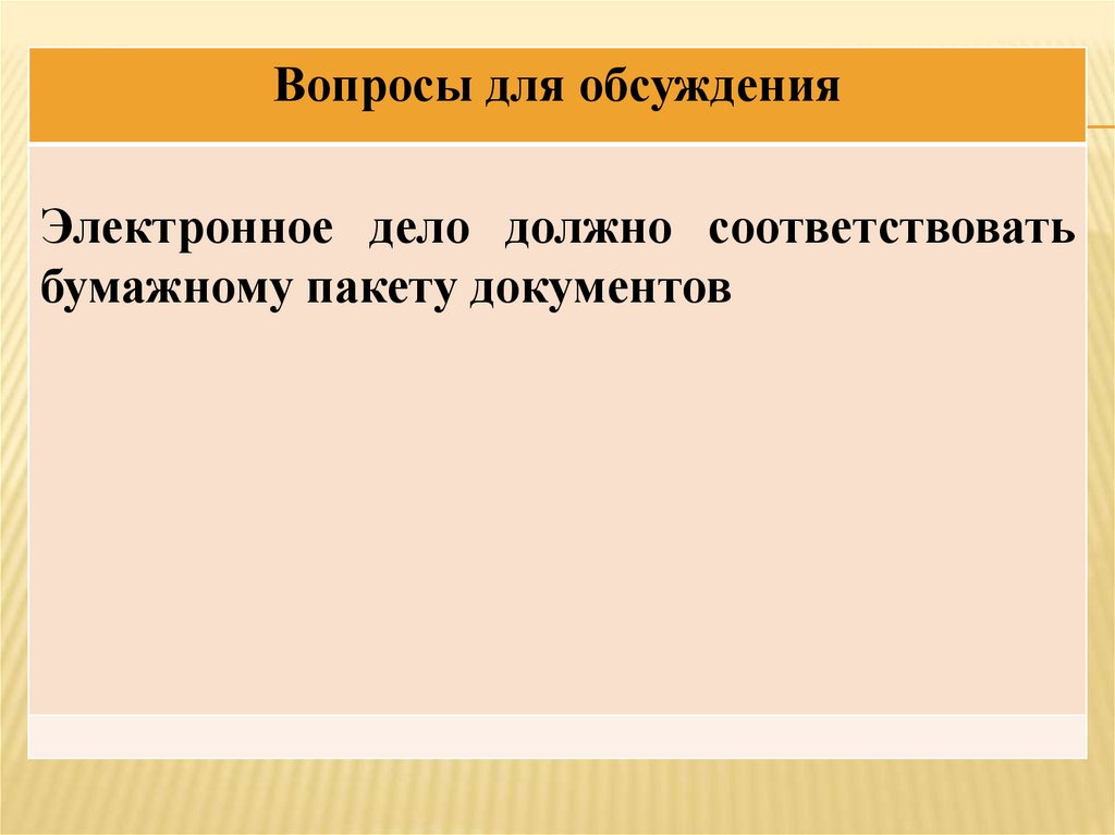 Вопросы для обсужденияЭлектронное дело должно соответствовать