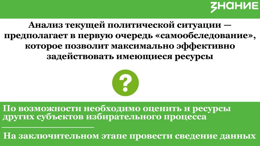Анализ текущей политической ситуации —предполагает в первую очередь «самообследование»,