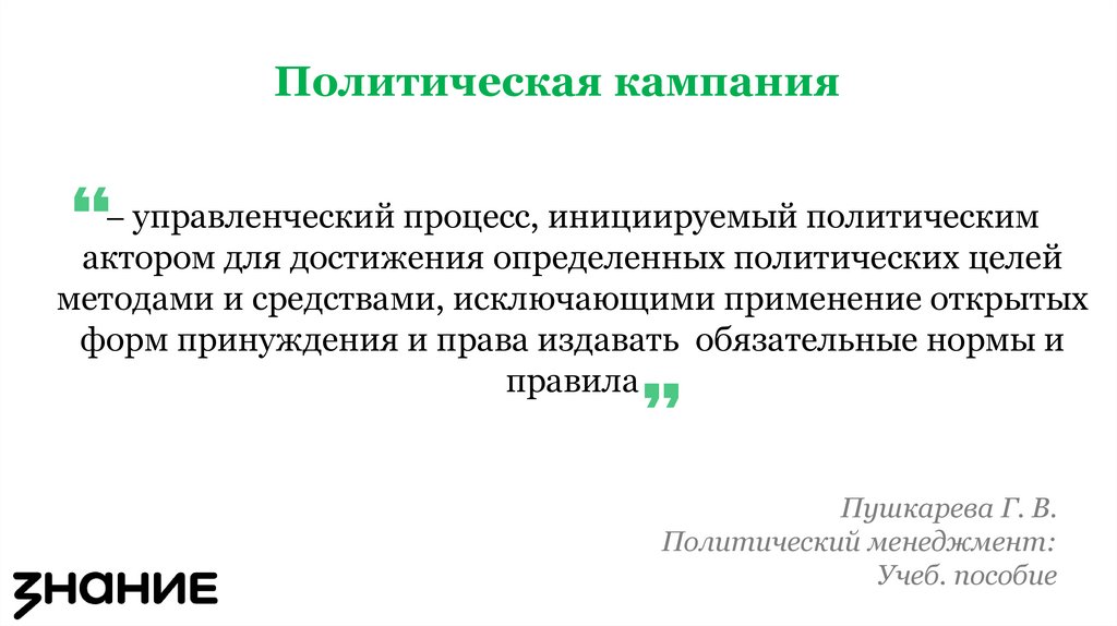 Политическая кампания– управленческий процесс, инициируемый политическим