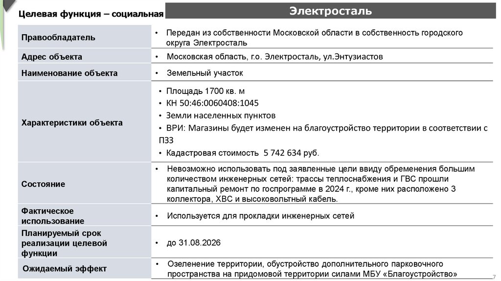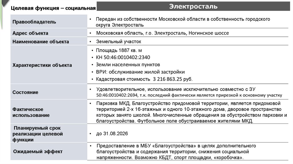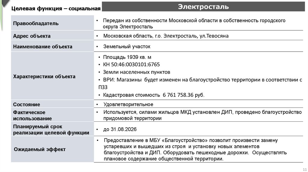 презентация по использованию ЗУ переданных из собственности МО в го Электросталь для благоустройства