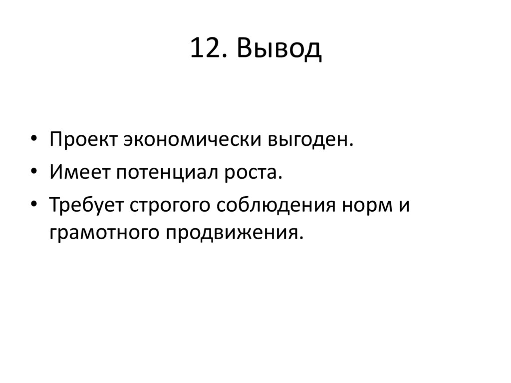 12. Вывод• Проект экономически выгоден.