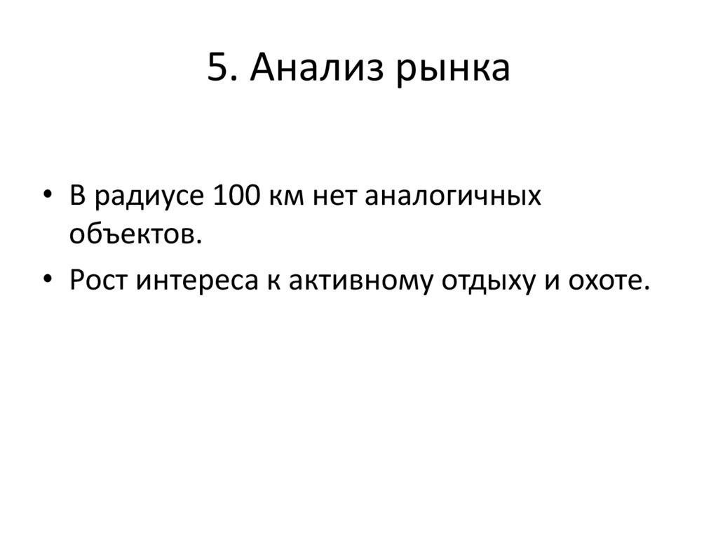 5. Анализ рынка• В радиусе 100 км нет аналогичных