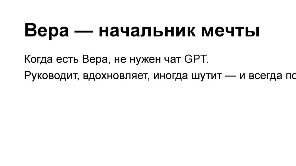Вера — начальник мечтыКогда есть Вера, не нужен чат GPT.