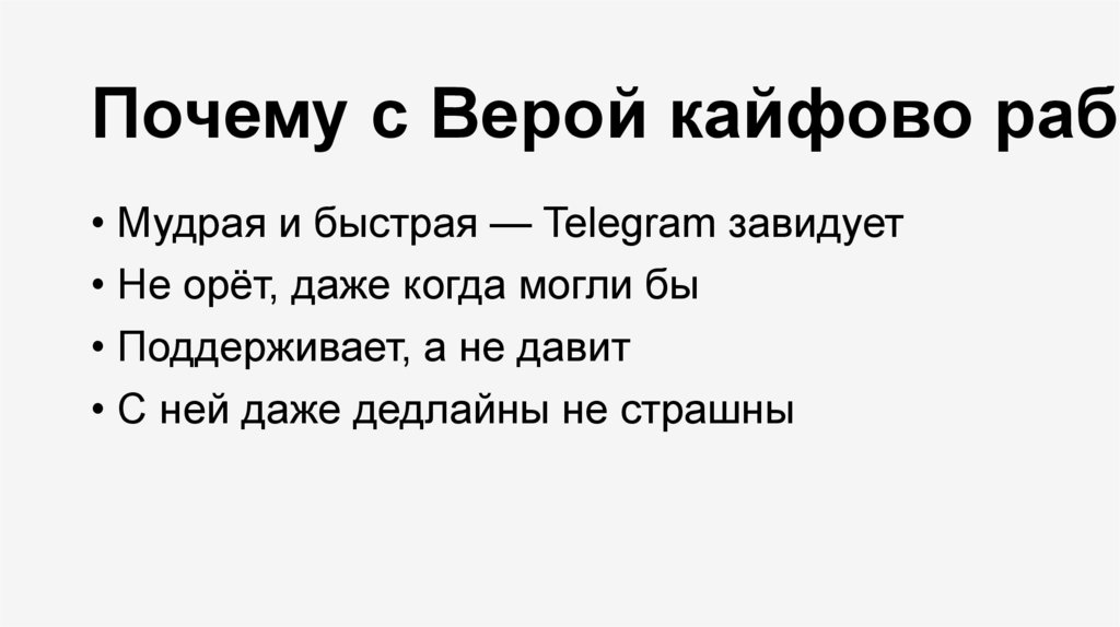 Почему с Верой кайфово рабо• Мудрая и быстрая — Telegram завидует