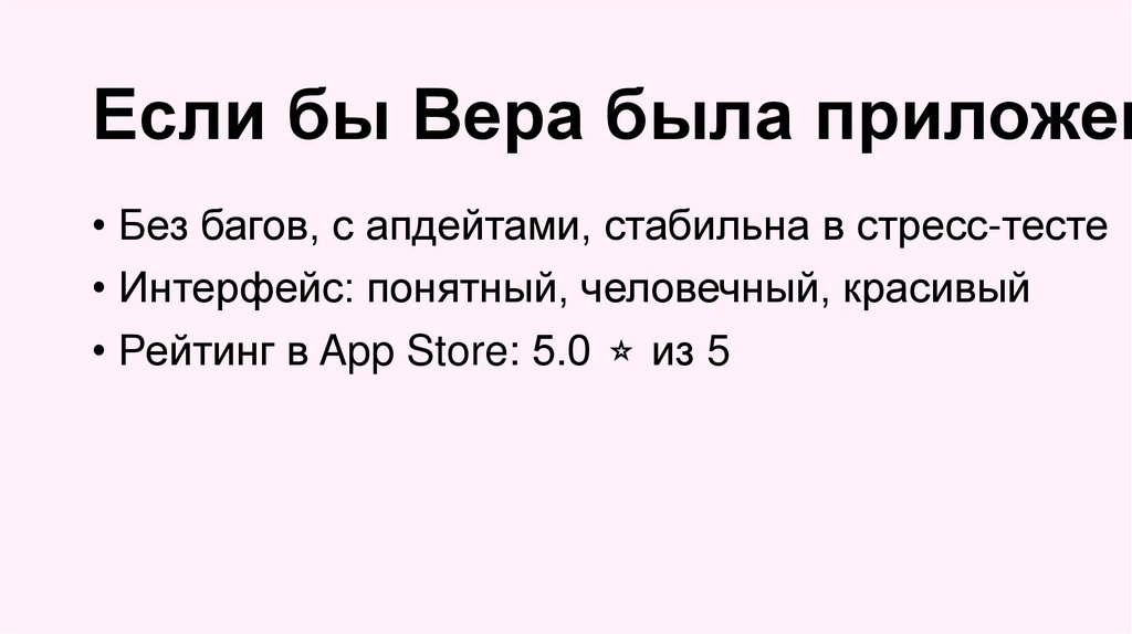 Если бы Вера была приложен• Без багов, с апдейтами, стабильна в стресс-тесте
