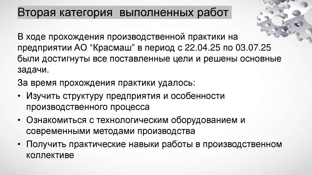 Вторая категория выполненных работВ ходе прохождения производственной практики на