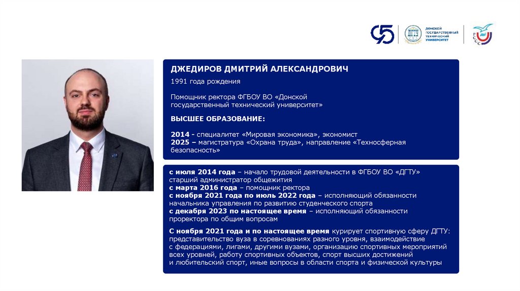 С ноября 2021 года и по настоящее время курирует спортивную сферу ДГТУ: