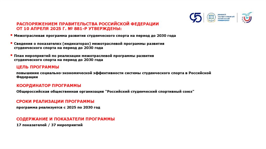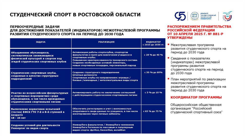 Межотраслевая программа развития студенческого спорта до 2030 года