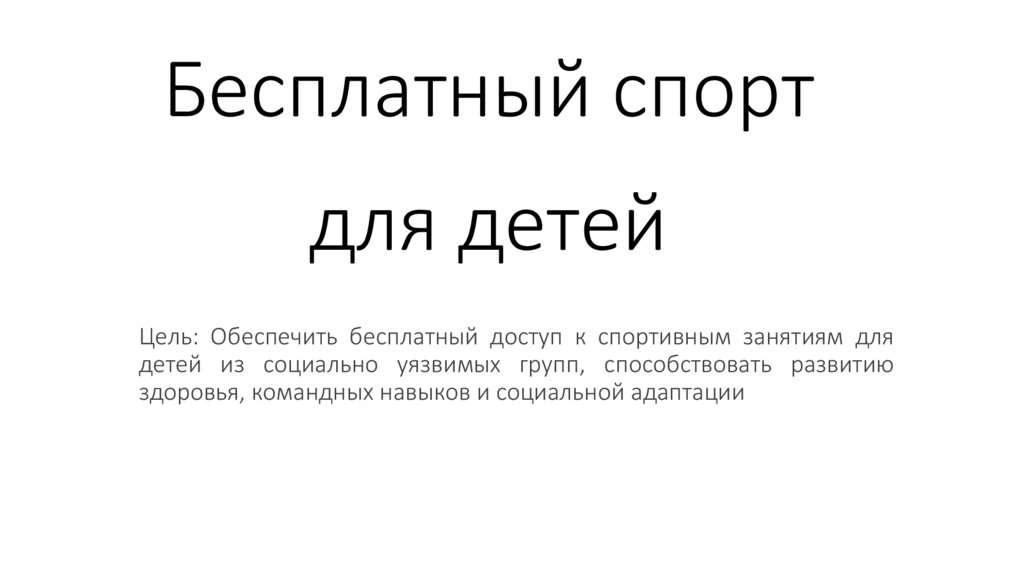 Цель: Обеспечить бесплатный доступ к спортивным занятиям для