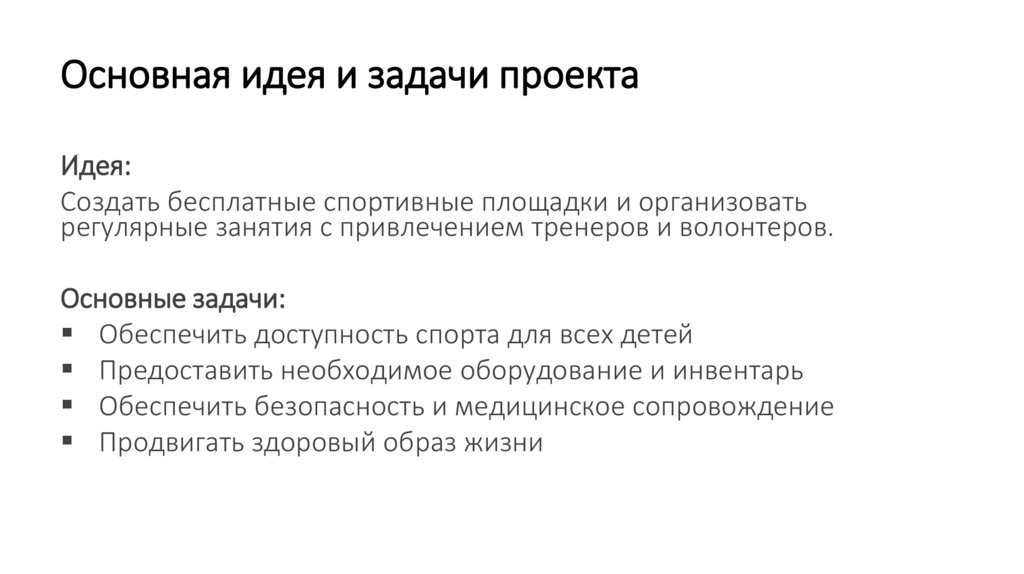 Основная идея и задачи проектаИдея: