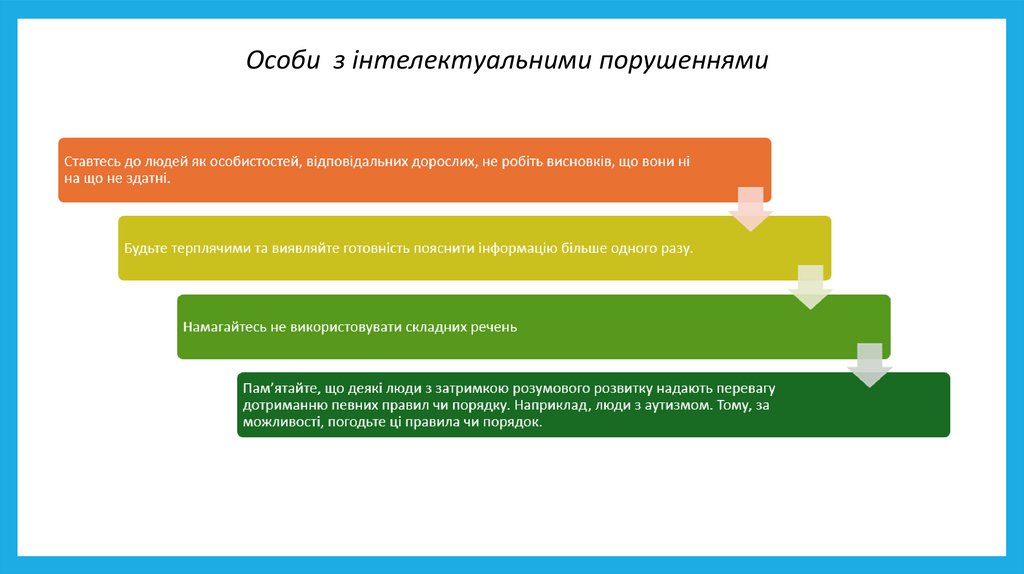 Будьте терплячі з людьми, які мають труднощі у спілкуванні; не виправляйте їх; не закінчуйте речення замість них. Якщо не