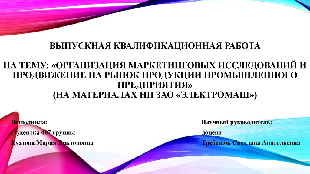 1. ВЫПУСКНАЯ КВАЛИФИКАЦИОННАЯ РАБОТА на тему: «ОРГАНИЗАЦИЯ МАРКЕТИНГОВЫХ ИССЛЕДОВАНИЙ И ПРОДВИЖЕНИЕ НА РЫНОК ПРОДУКЦИИ