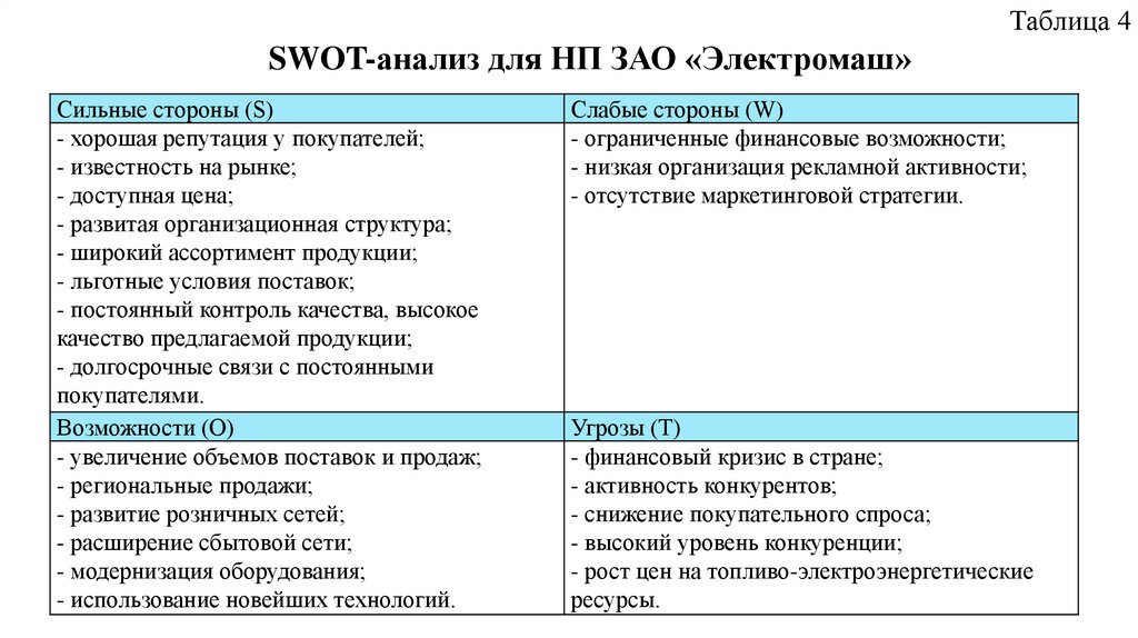 продукции на предприятии НП ЗАО «Электромаш» и предложении