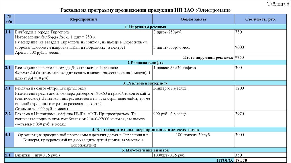 Таблица 6Расходы на программу продвижения продукции НП ЗАО «Электромаш»