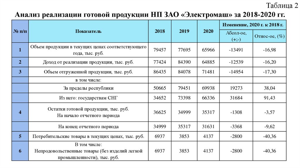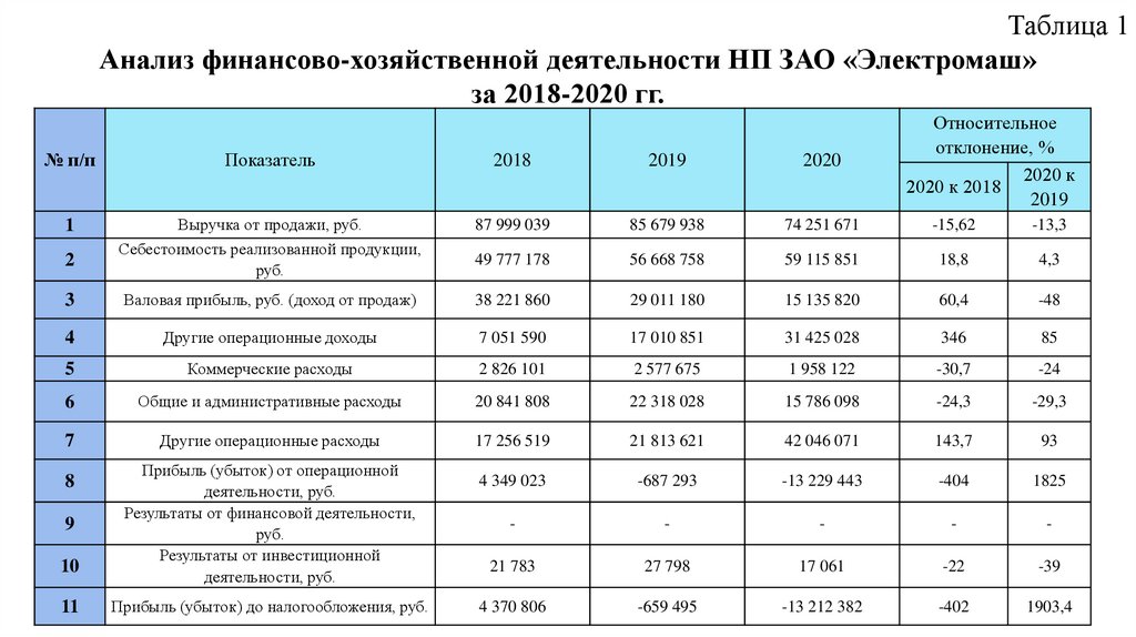 Таблица 1Анализ финансово-хозяйственной деятельности НП ЗАО «Электромаш»