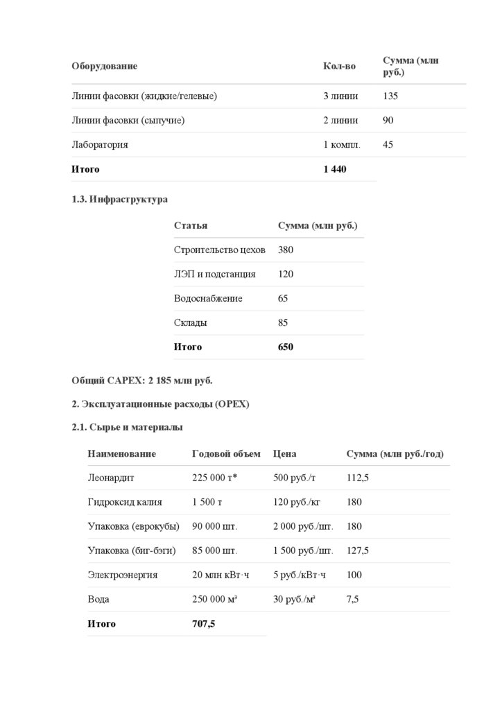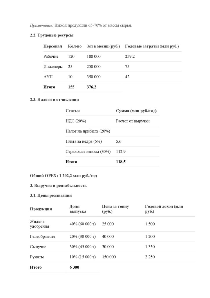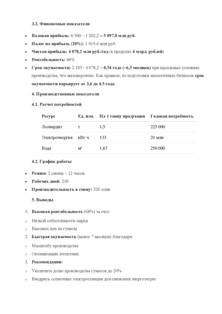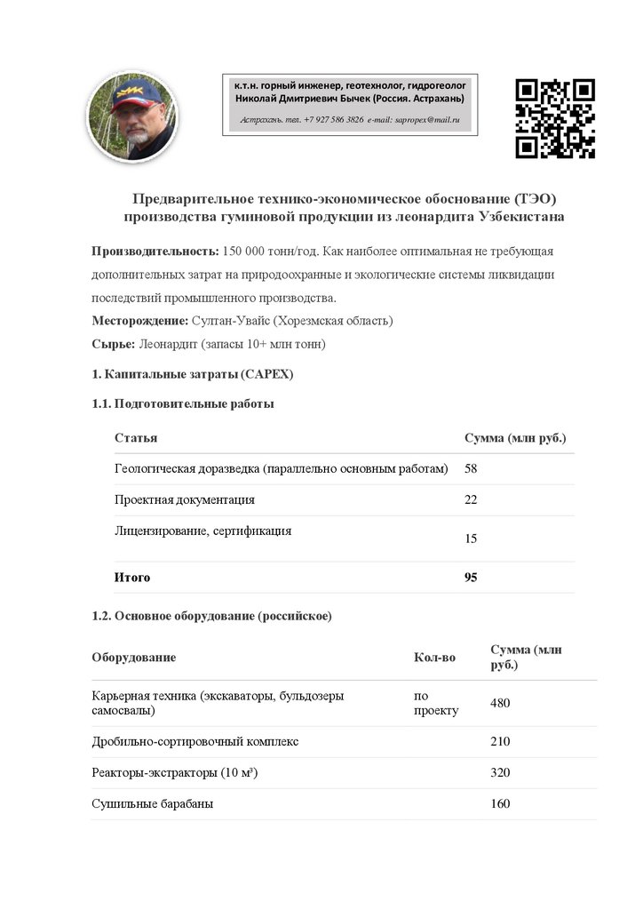 Предварительное технико-экономическое обоснование (ТЭО) производства гуминовой продукции из леонардита Узбекистана