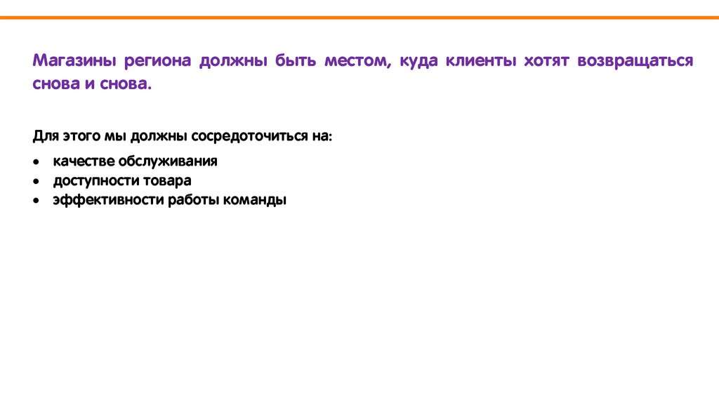Магазины региона должны быть местом, куда клиенты хотят возвращатьсяснова и снова.