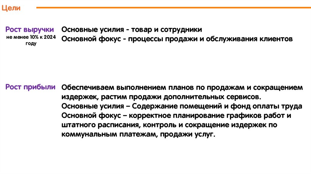 ЦелиРост выручки Основные усилия - товар и сотрудники