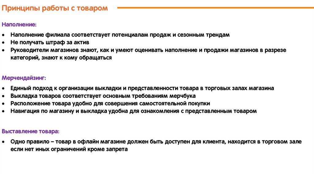 Единый подход к организации выкладки и представленности товара в торговых залах магазина
