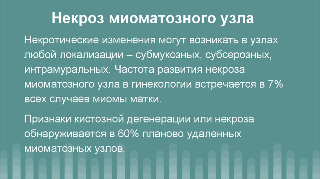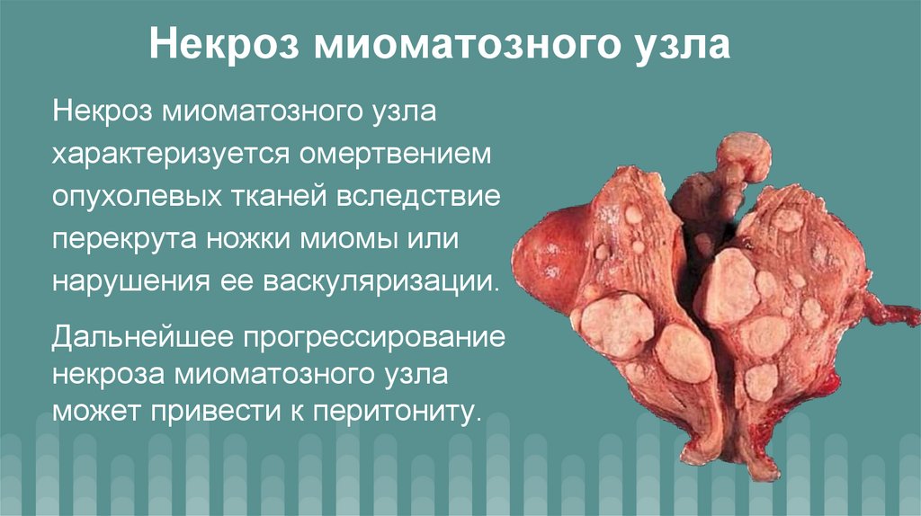 Некроз миоматозного узлаНекротические изменения могут возникать в узлах