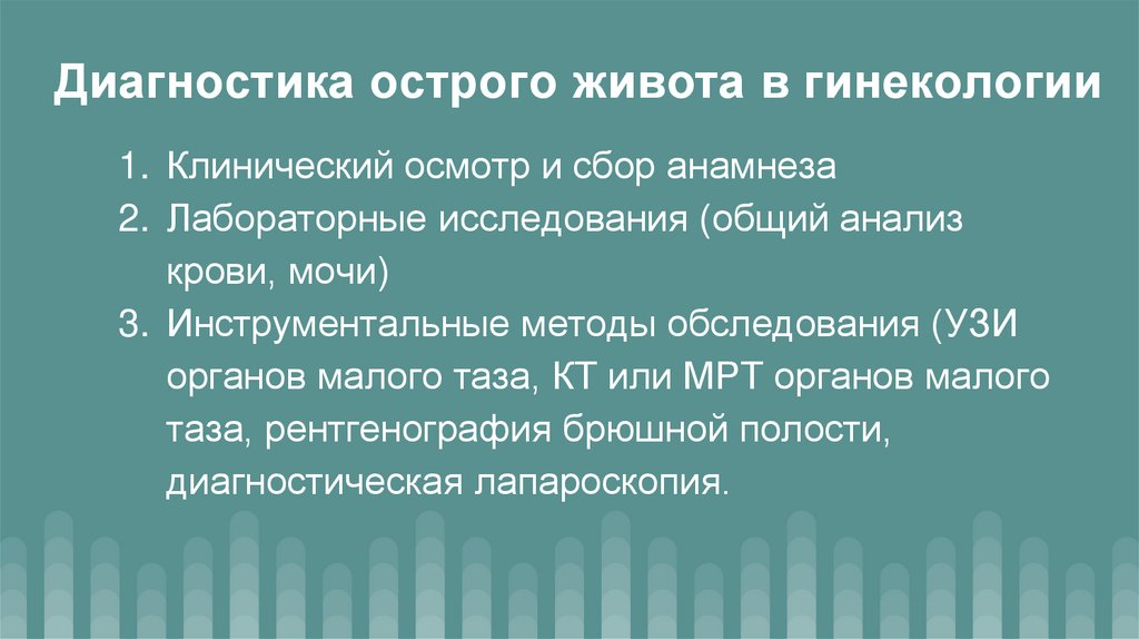 Диагностика острого живота в гинекологии1. Клинический осмотр и сбор анамнеза