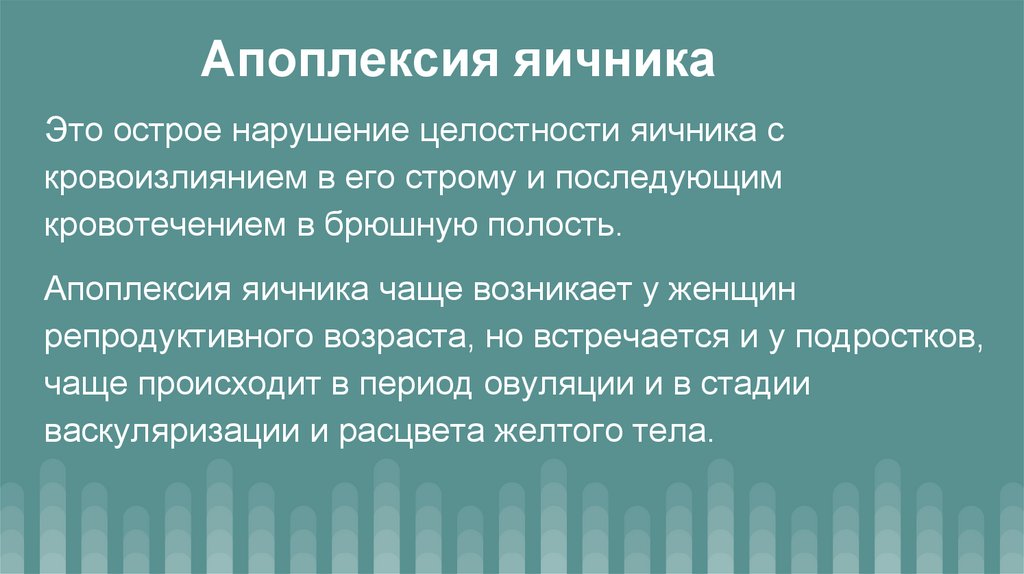 Апоплексия яичникаЭто острое нарушение целостности яичника с