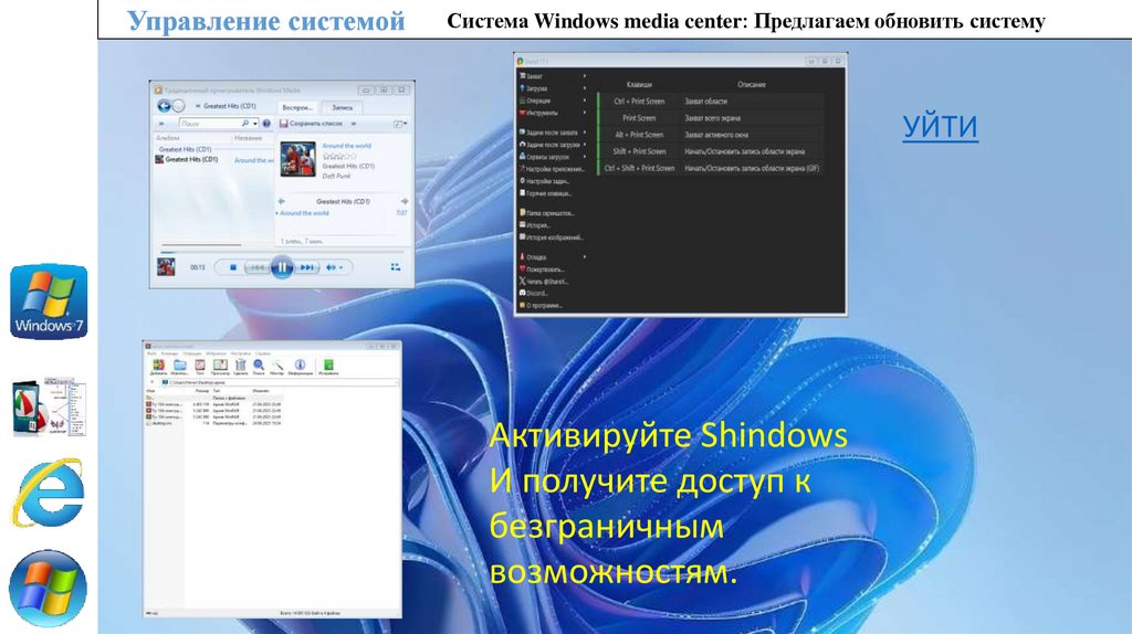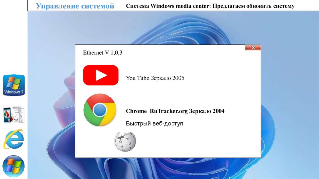 Управление системойСистема Windows media center: Предлагаем обновить систему