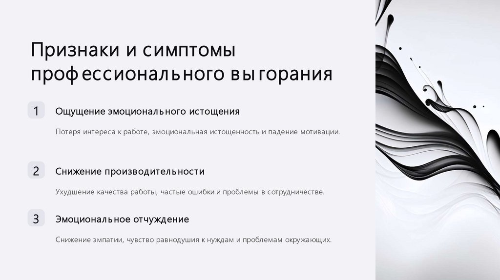 Потеря интереса к работе, эмоциональная истощенность и падение мотивации.
