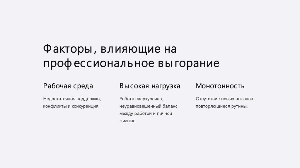 Ф акторы , вл ияющие напроф ессионал ь ное в ы горание
