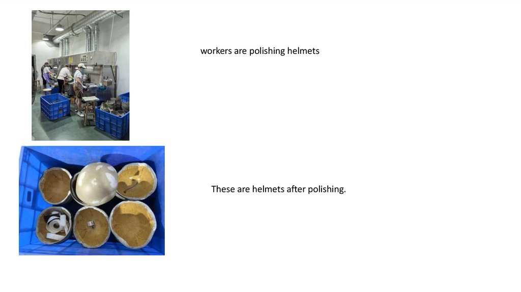 workers are polishing helmetsThese are helmets after polishing.