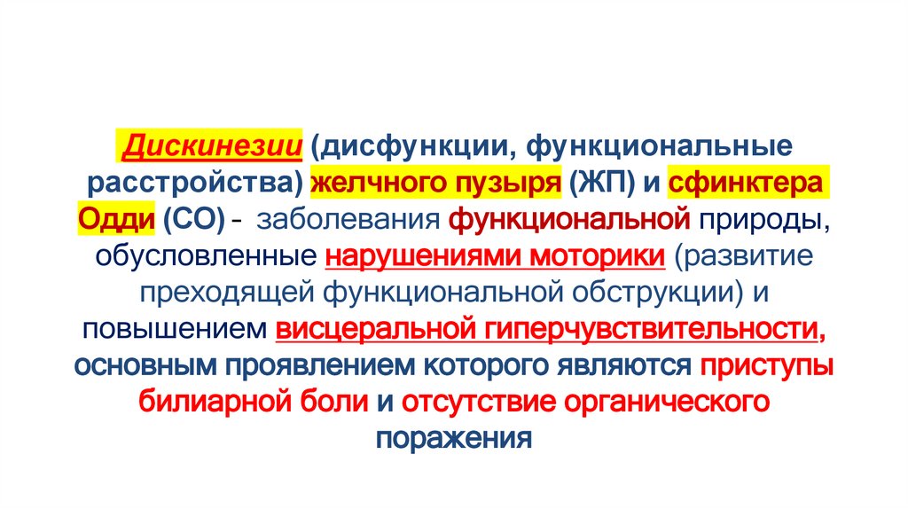 Дискинезии (дисфункции, функциональныерасстройства) желчного пузыря (ЖП) и сфинктера