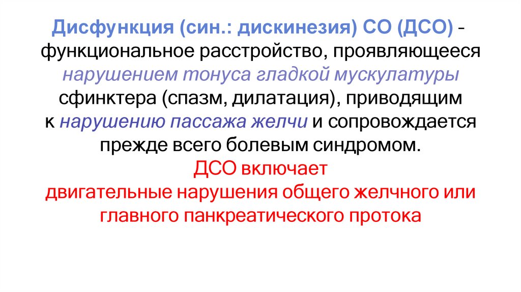 Дисфункция (син.: дискинезия) СО (ДСО) –функциональное расстройство, проявляющееся