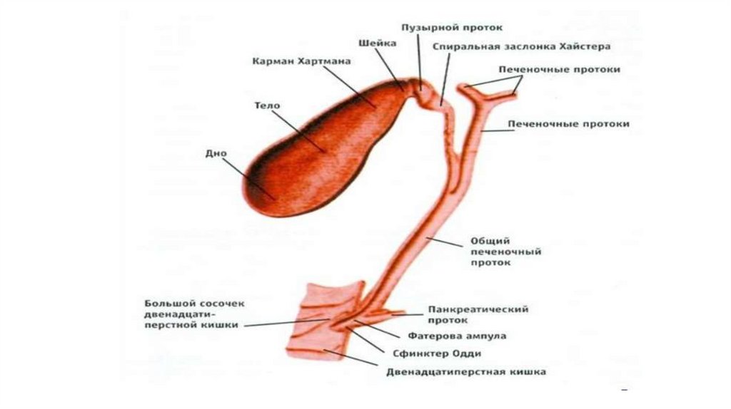 4. По ходу желчных протоков имеется несколько сфинктеров: - сфинктер Мирицци – в месте слияния правого и левого печеночных